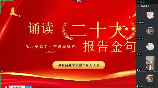 为深入学习宣传贯彻党的二十大精神,凝聚思想共识,汇聚奋进力量,11月28日,图书馆分工会组织开展了党的二十大报告金句线上诵读活动。